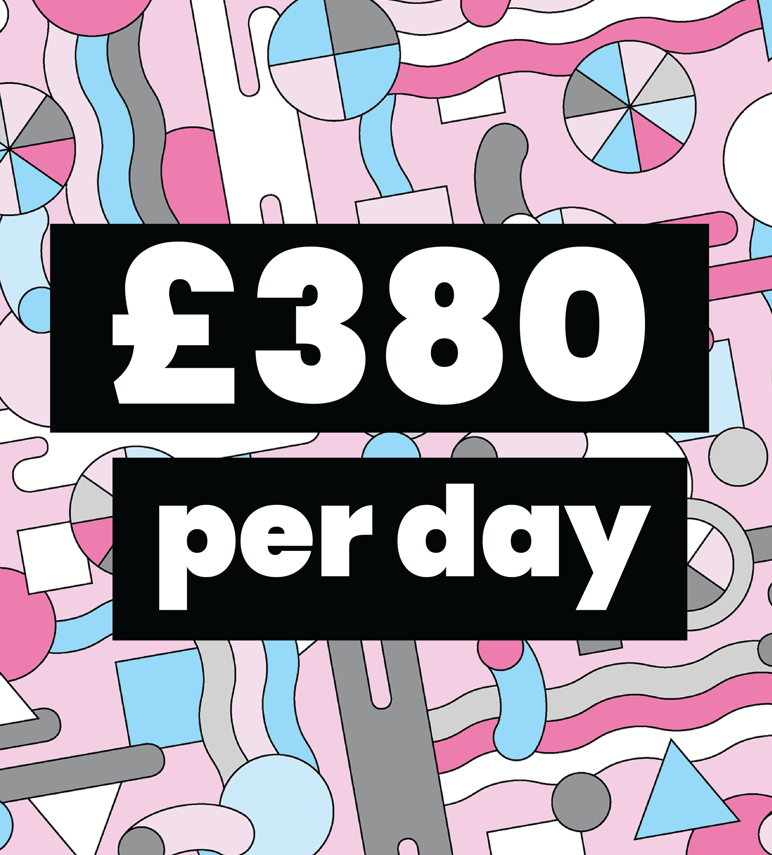 We don’t believe in haggling. Our day rates are an average day rate for UK freelancers across the board. £380. This means everyone can get on the job and be comfortable and transparent.